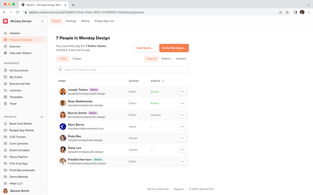 Bring your people, documents, Libraries and more together with a Sketch Workspace. You’ll always have full, instant control over who’s a part of your team, and what they can access and what they can edit. And, with Projects and Collections, you can keep things organized so you never lose track of a document.